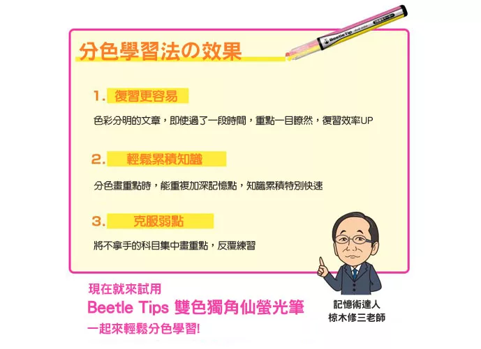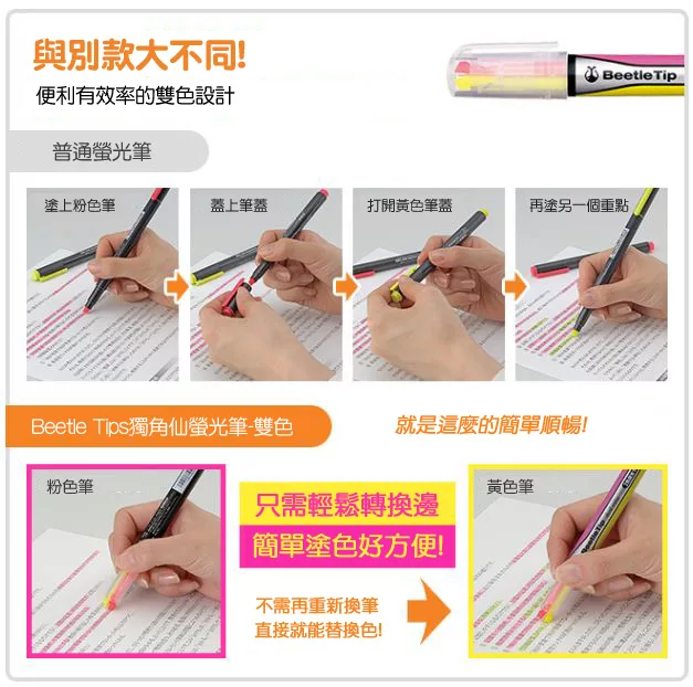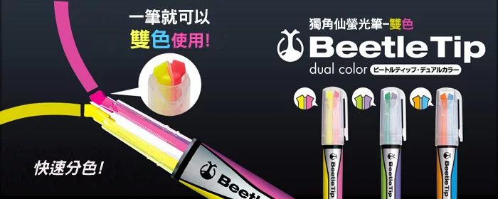 產品名稱:Beetle Tip 獨角仙雙色螢光筆