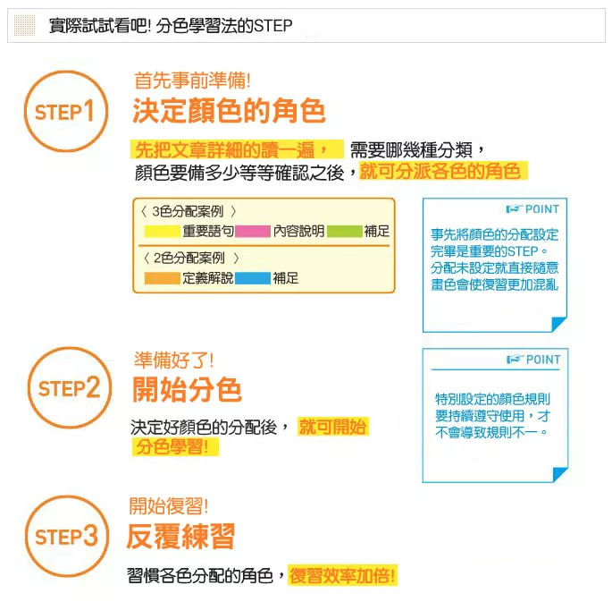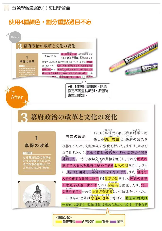 螢光筆顏色清晰飽滿,讓重點更醒目