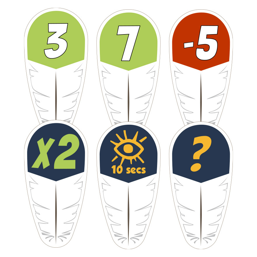 玩家扮演印地安人各拿一根羽毛,在不知道自己羽毛內容的情況下,猜測所有羽毛數值總和!